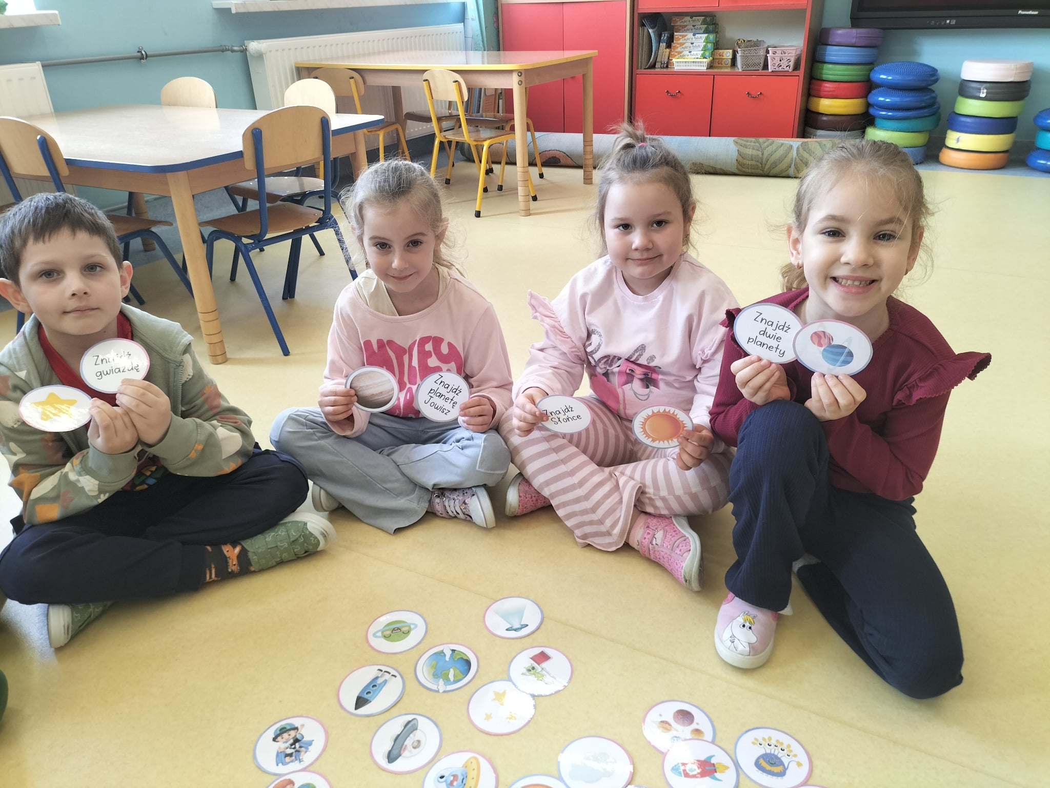 Cały tydzień upłynął nam pod znakiem niezwykłej podróży w kosmos! Dzieci z ogromnym zaangażowaniem poznawały planety Układu Słonecznego – dowiedziały się, czym się charakteryzują i co je wyróżnia. Podczas zajęć świetnie poradziły sobie z rozkodowywaniem wyrazów oraz głoskowaniem. Poznaliśmy także nową literę – R jak rakieta, a zwieńczeniem tej nauki było wykonanie własnych rakiet. Rozmawialiśmy o pracy astronauty i jego stroju, a także o Księżycu i jego fazach . Na zakończenie tygodnia dzieci wykazały się kreatywnością, tworząc ufoludki z rolek . Nie zabrakło też powtórki pór roku i miesięcy oraz zabaw na spostrzegawczość – dzieci bardzo dobrze radziły sobie z odnajdywaniem właściwych ilustracji. To był tydzień pełen nauki, zabawy i kosmicznych odkryć!
