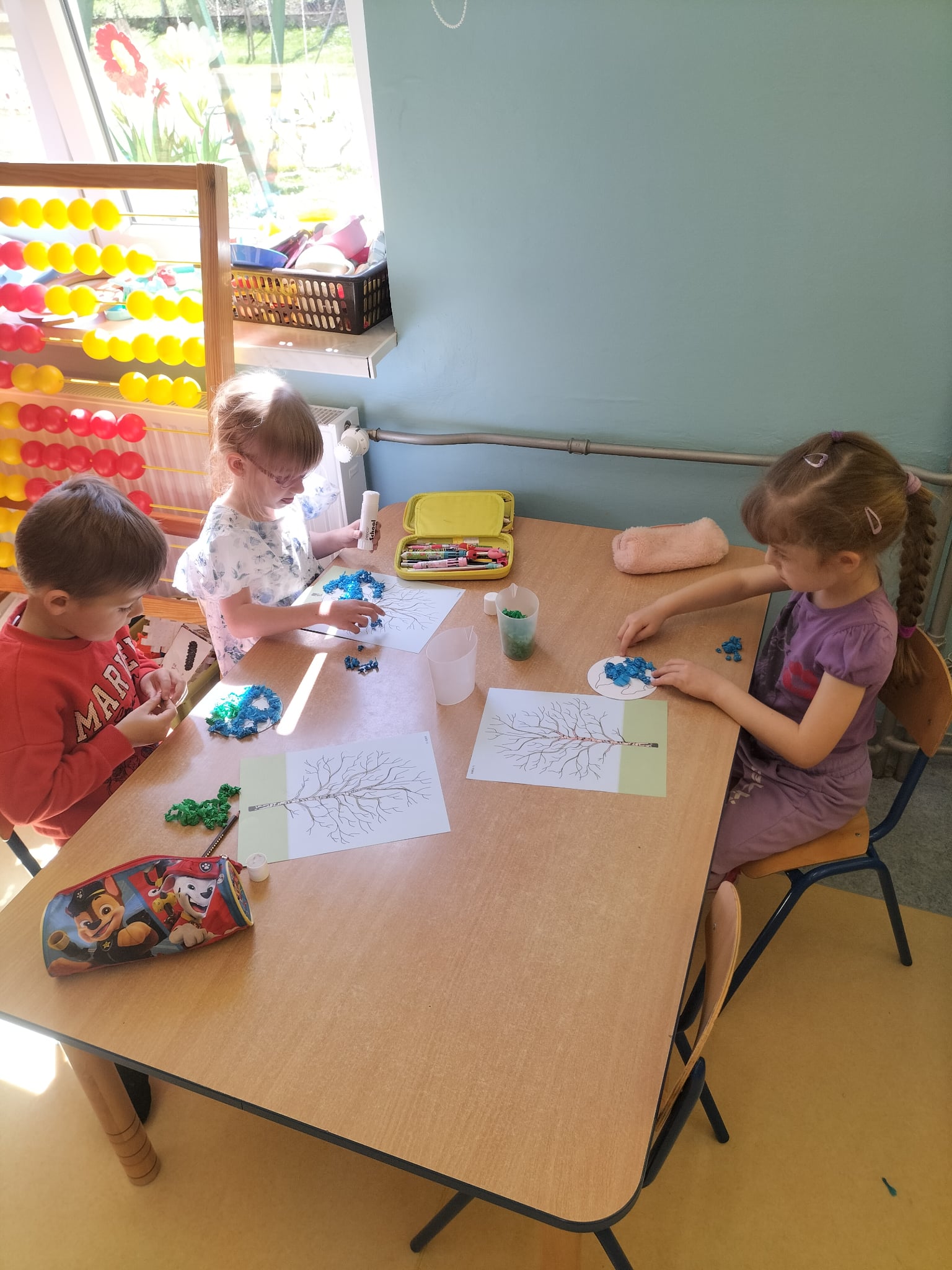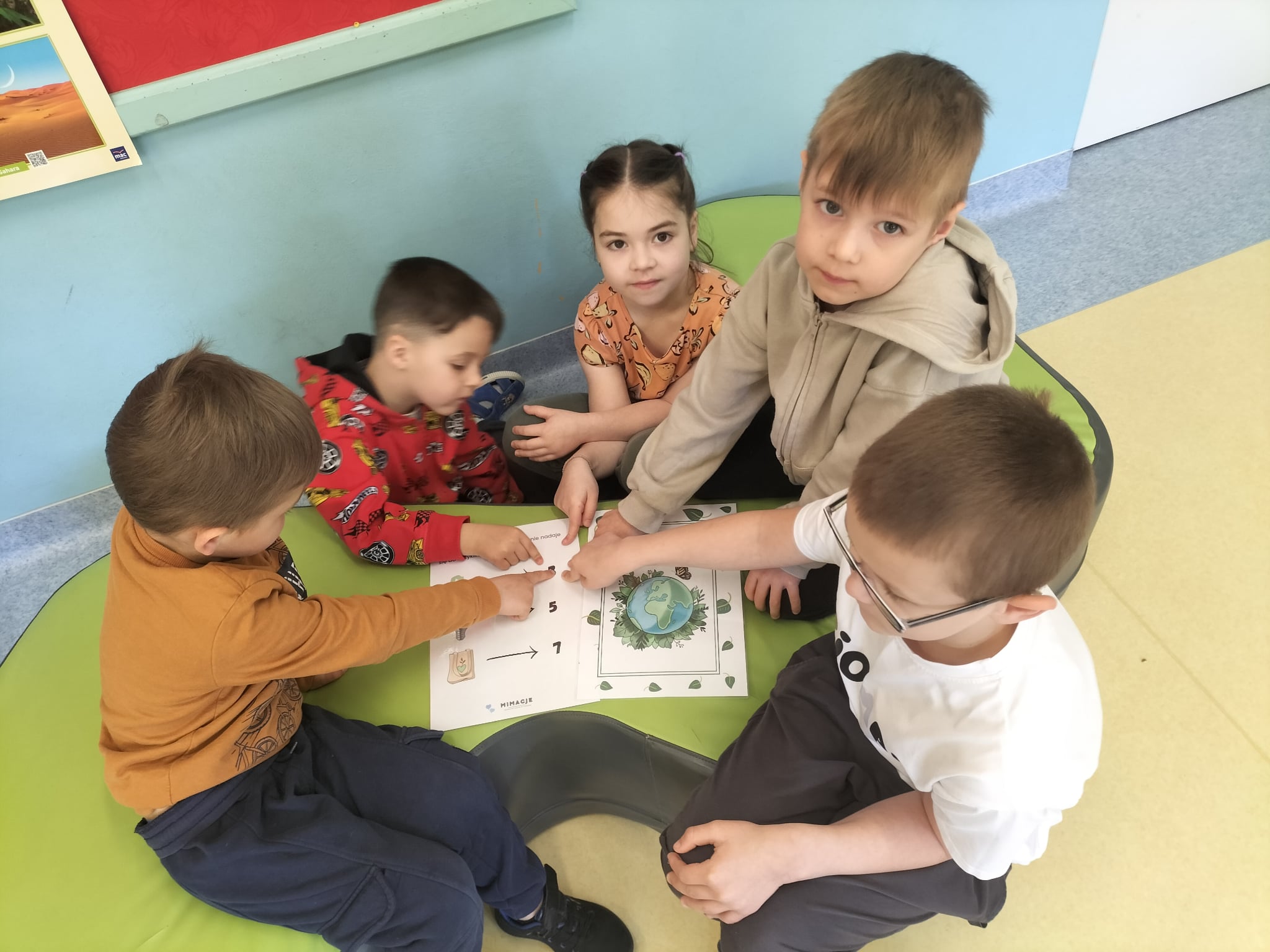 Na zakończenie wspólnie pokolorowaliśmy plakat „Dzień Ziemi”, który ozdobił naszą salę. Zajęcia przebiegły w miłej atmosferze, a dzieci aktywnie uczestniczyły we wszystkich proponowanych działaniach.