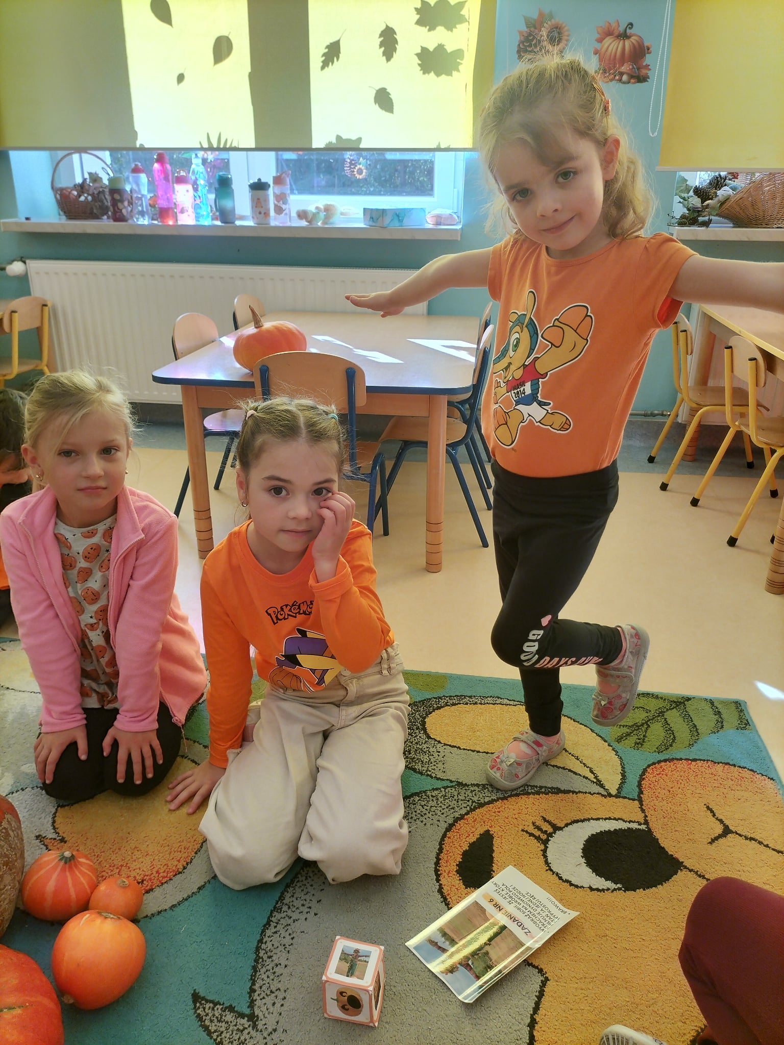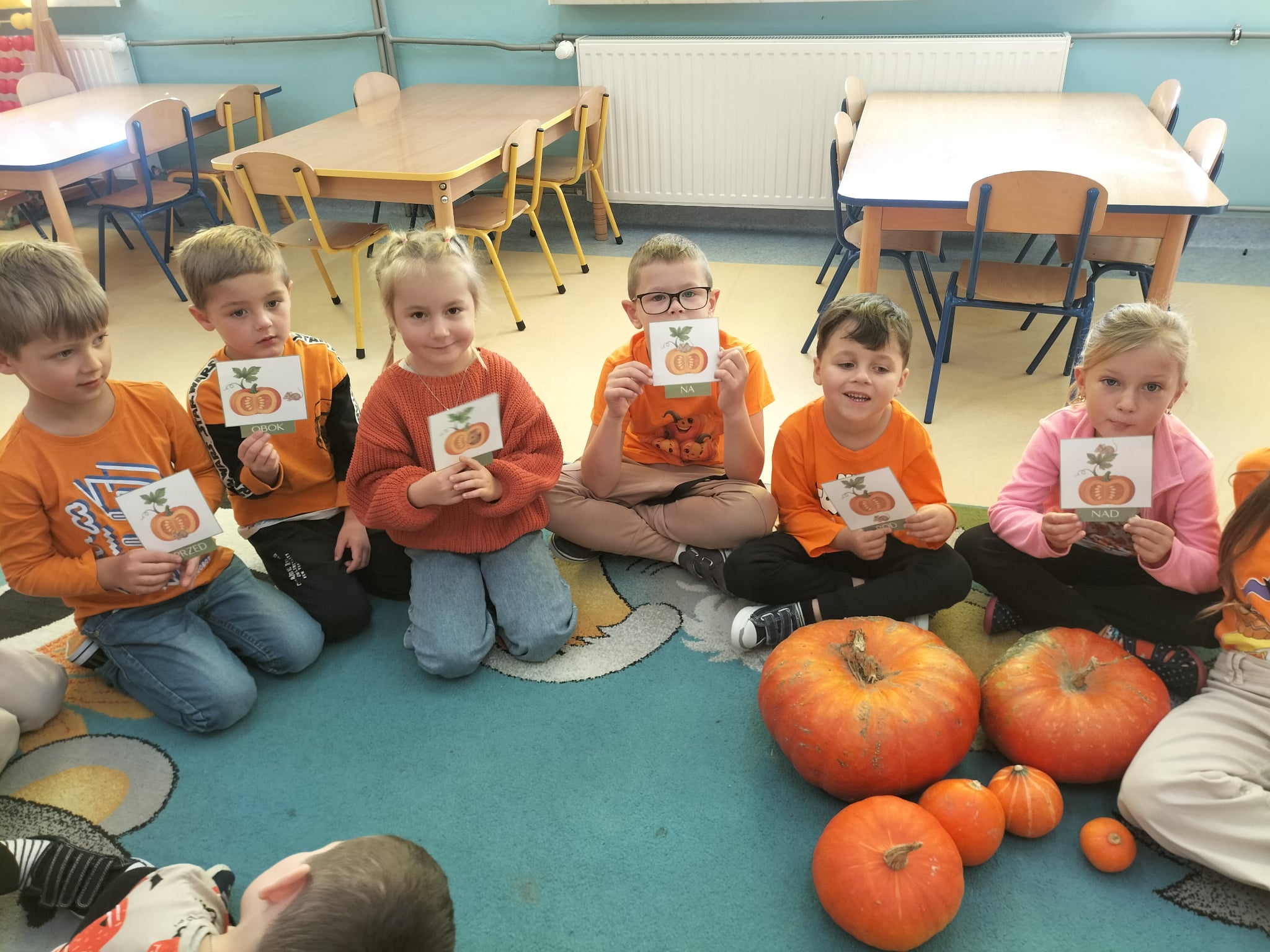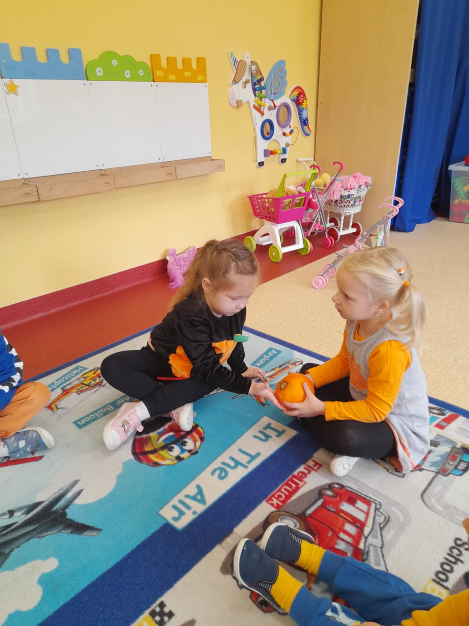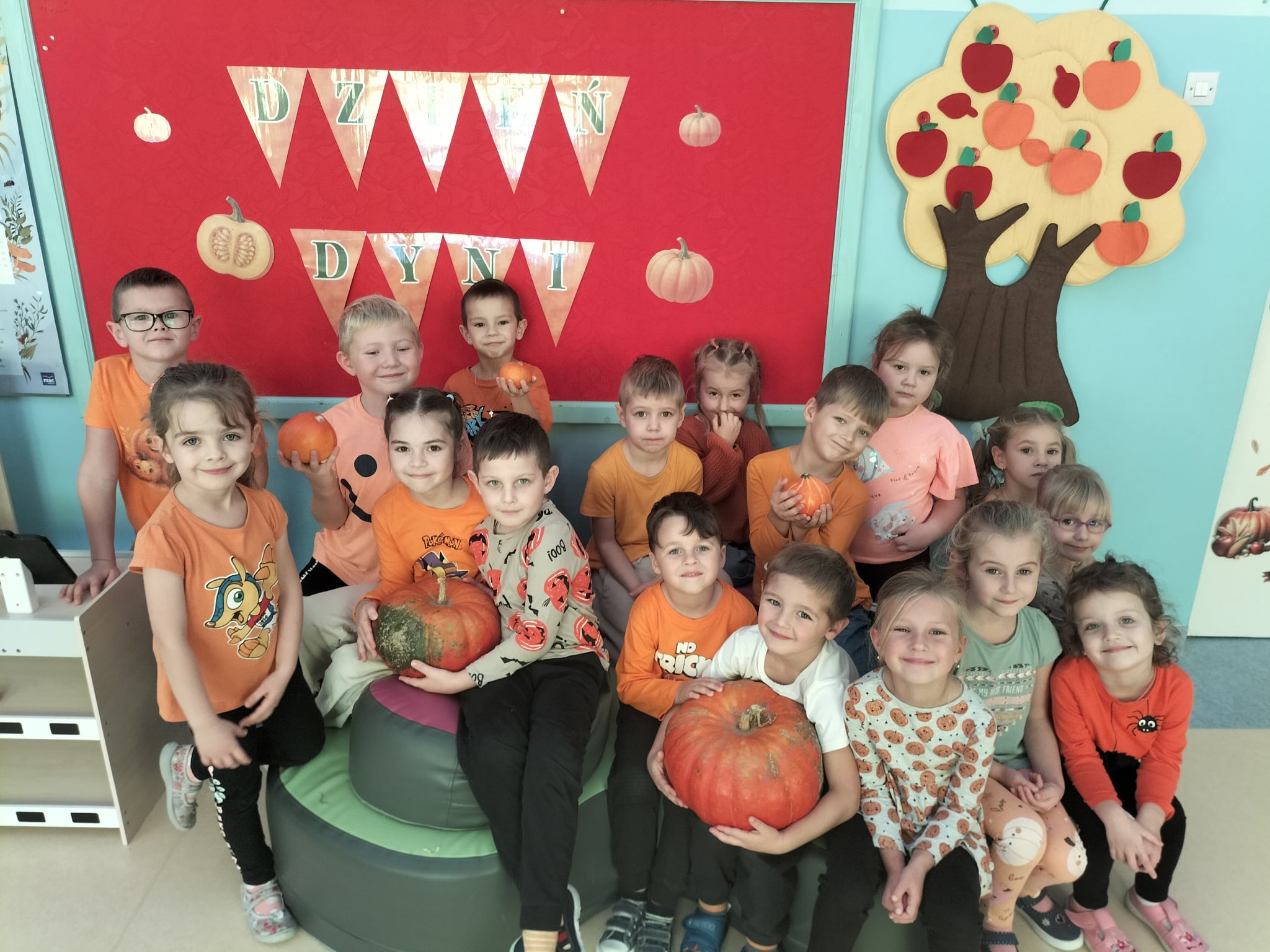 Wśród dzieci dominował kolor pomarańczowy, a wszystko za sprawą obchodów Dnia Królowej Jesieni. Dzieci zapoznały się z budową dyni oraz jej rozwojem. Poza tym świetnie bawiły się podczas zabaw ruchowych i muzycznych.