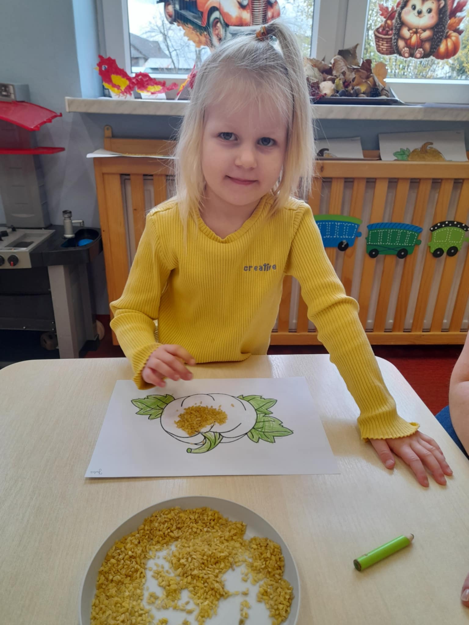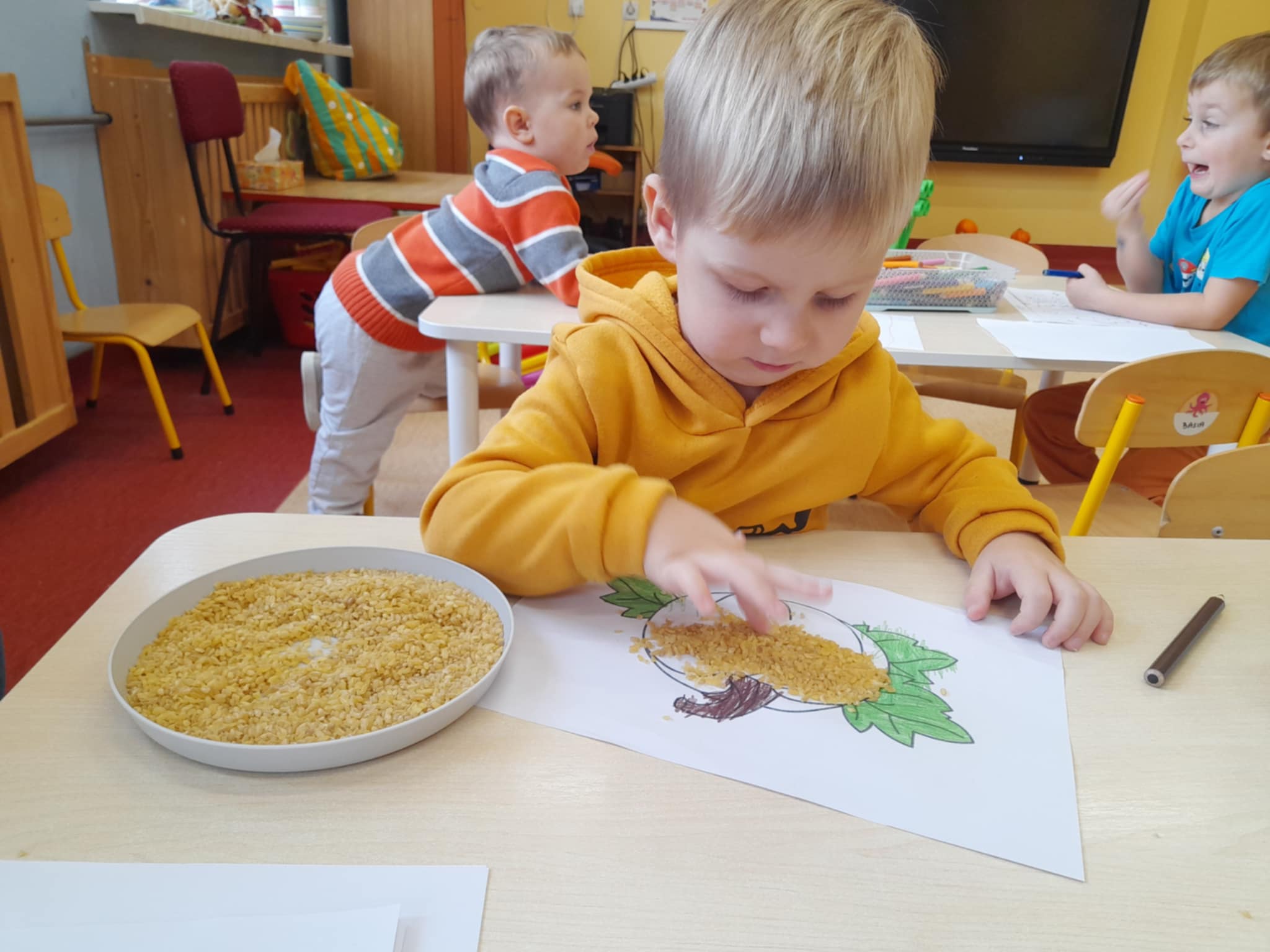 Wiele radości sprawiło dzieciom wykonanie pracy plastycznej, wykorzystując do tego kaszę. Na koniec dzieci otrzymały dyplomy za aktywny udział w zajęciach.