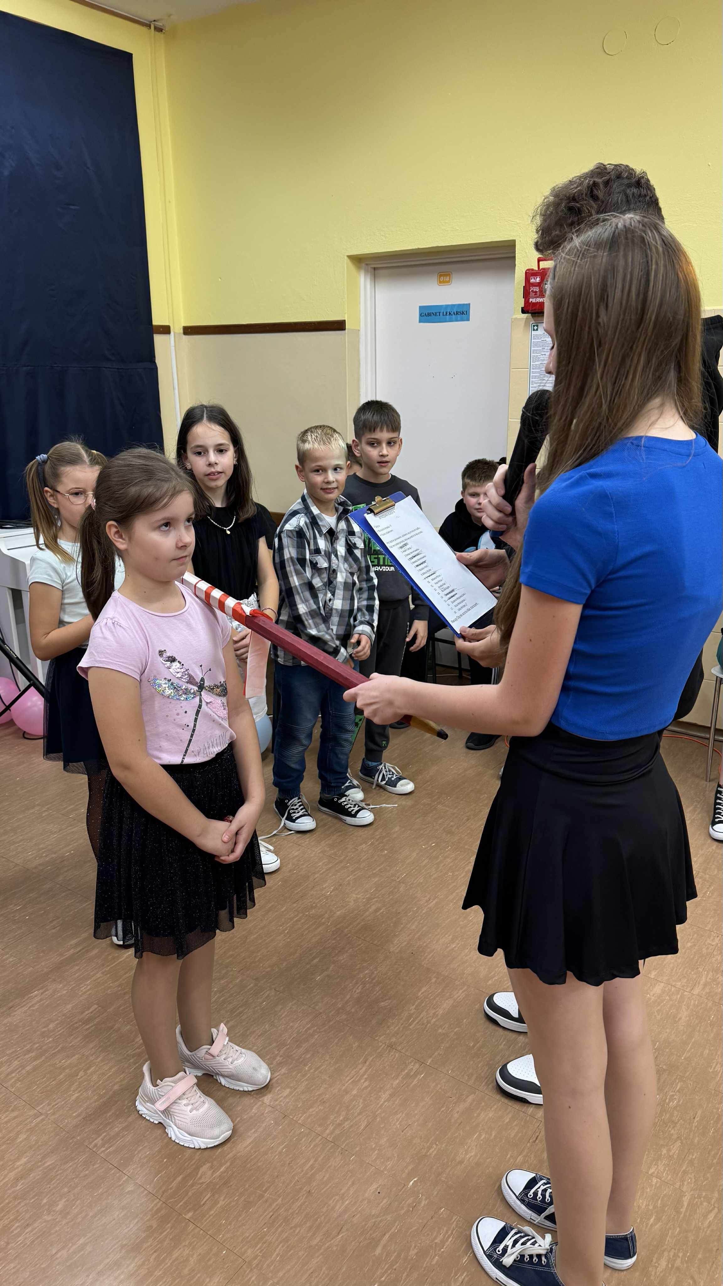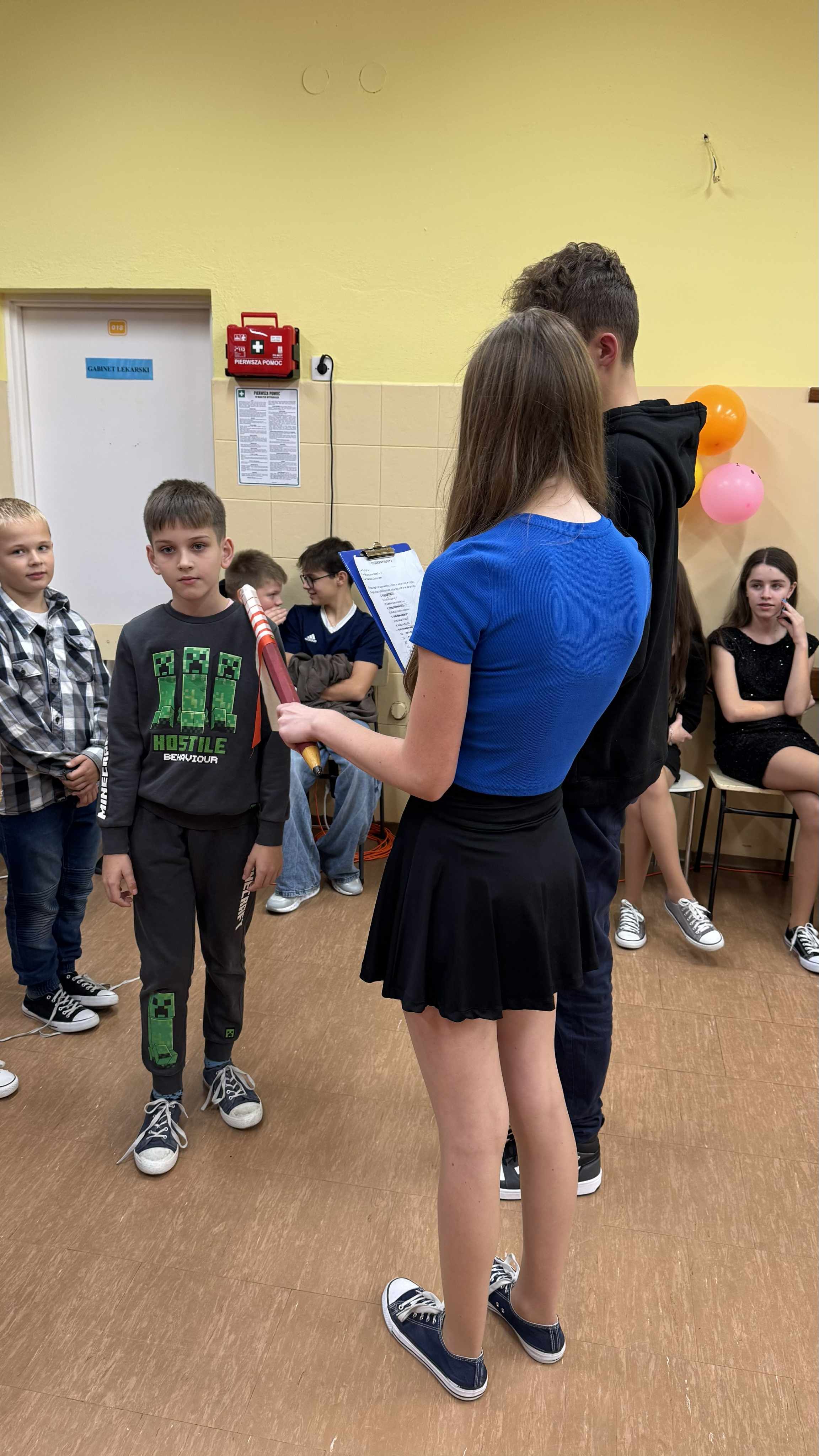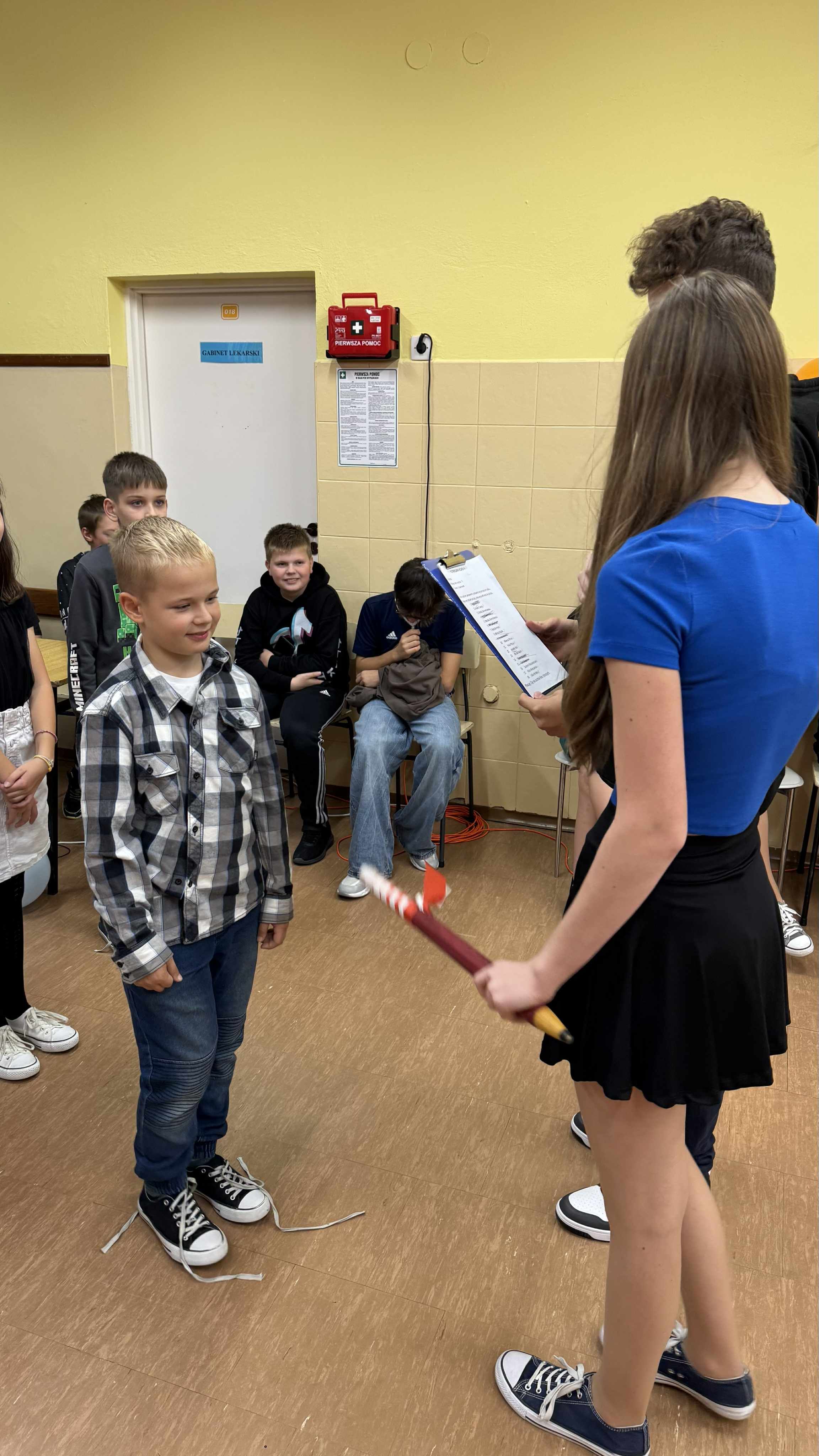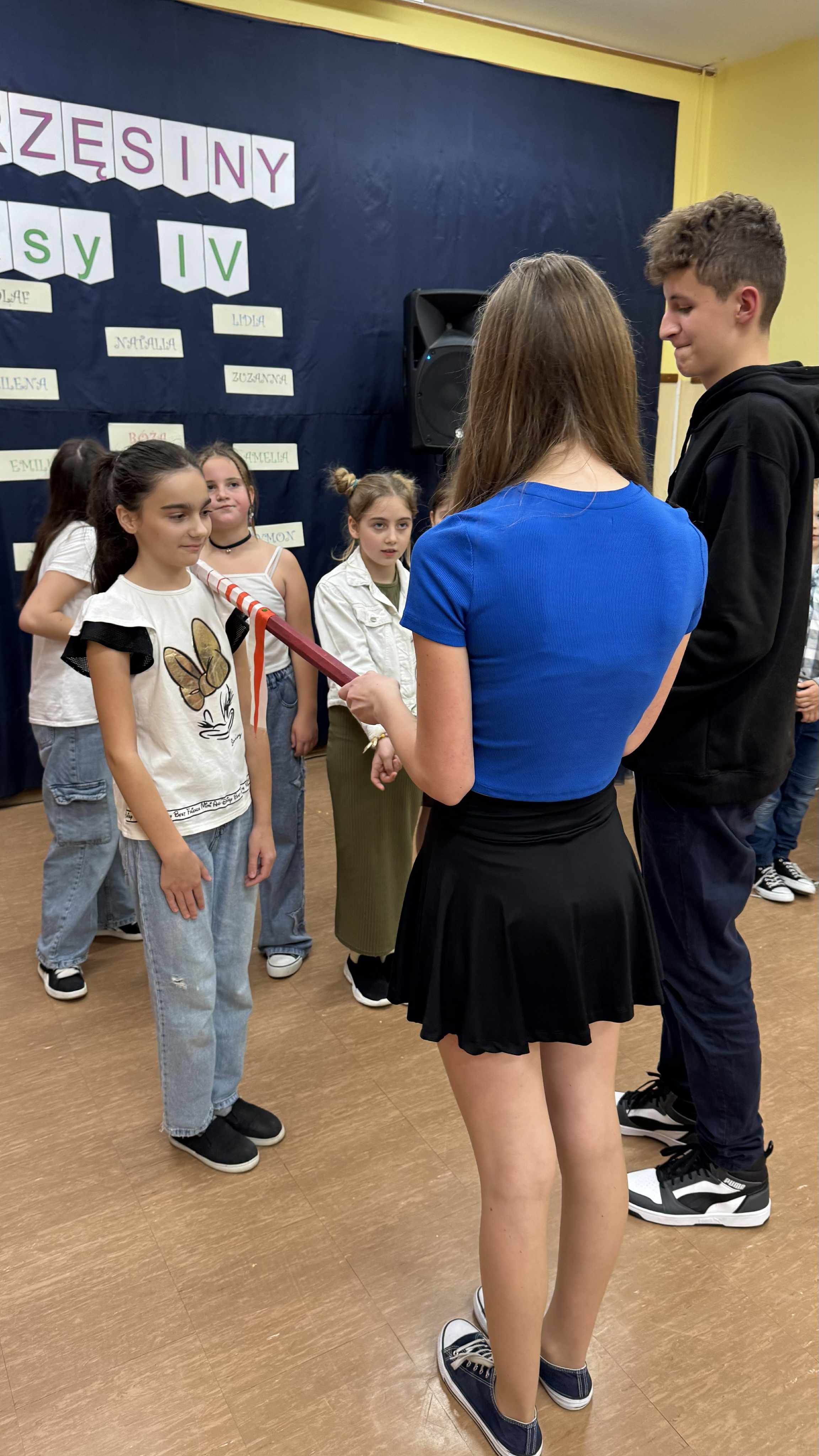 Było radośnie, zabawnie i bardzo wesoło – pełno śmiechu, emocji i dobrej energii! Czwartoklasiści brali udział w kilku konkurencjach i zabawach integracyjnych, które pozwoliły im wykazać się pomysłowością, sprytem i poczuciem humoru. Nie zabrakło też tańców, śpiewu i wspólnych okrzyków radości – w końcu OTRZĘSINY to świetna okazja, by pokazać szkolnego ducha i zintegrować się z kolegami ze starszych klas. Po wszystkich konkurencjach nadszedł moment najważniejszy – uroczyste pasowanie czwartoklasistów na pełnoprawnych uczniów klas starszych!