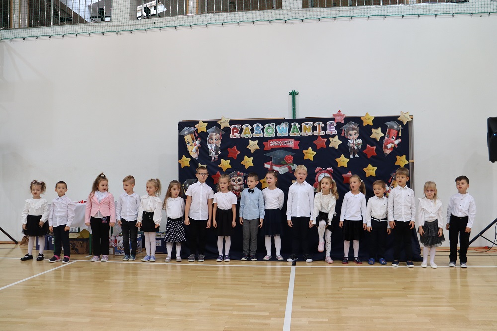 Uroczystość rozpoczęła się od serdecznego powitania przez panią dyrektor Edytę Rysz oraz przewodniczącą Samorządu Szkolnego. Następnie nadszedł czas na część artystyczną, w której przedszkolaki i uczniowie klasy I pokazali swoje talenty.
