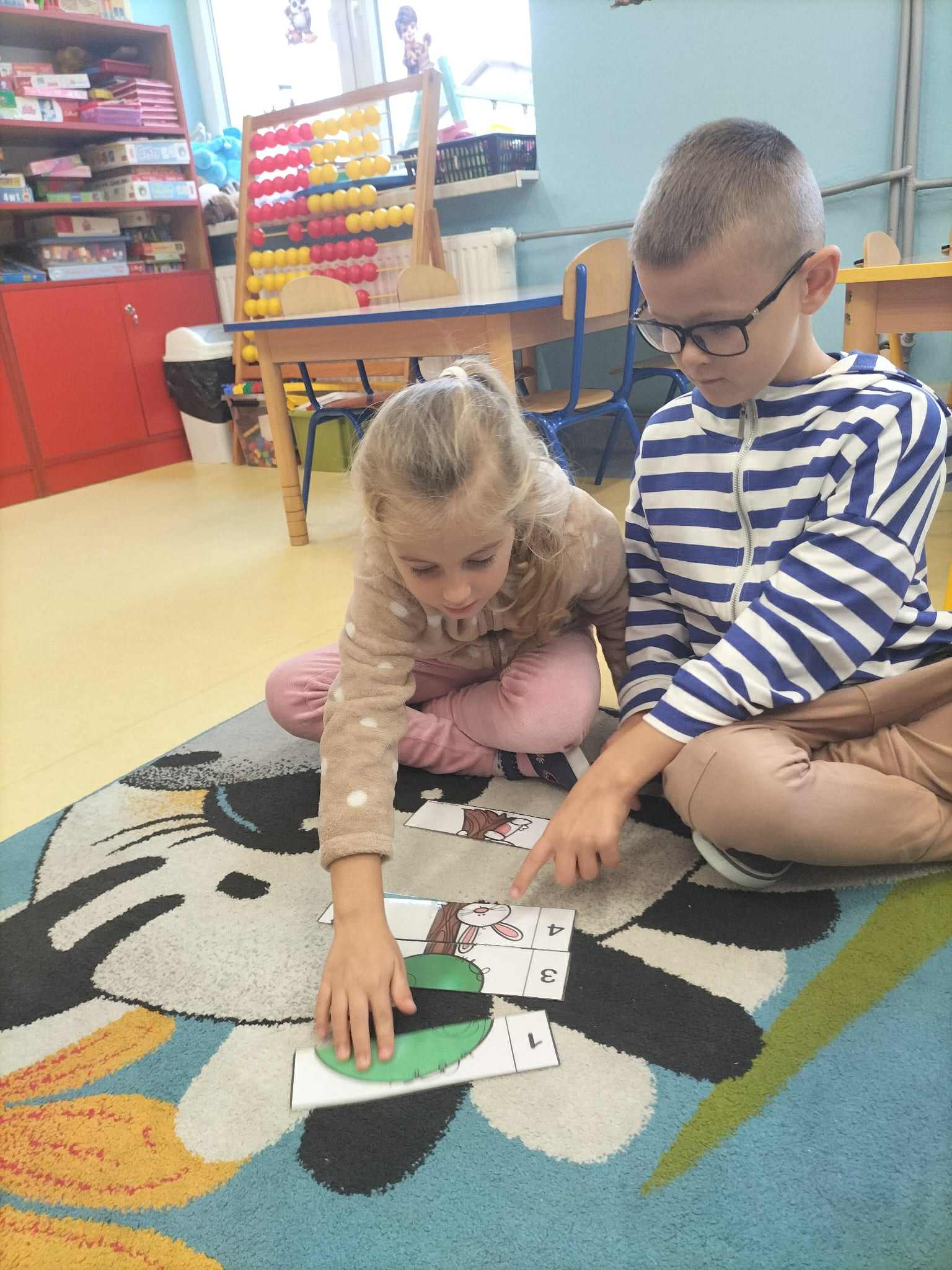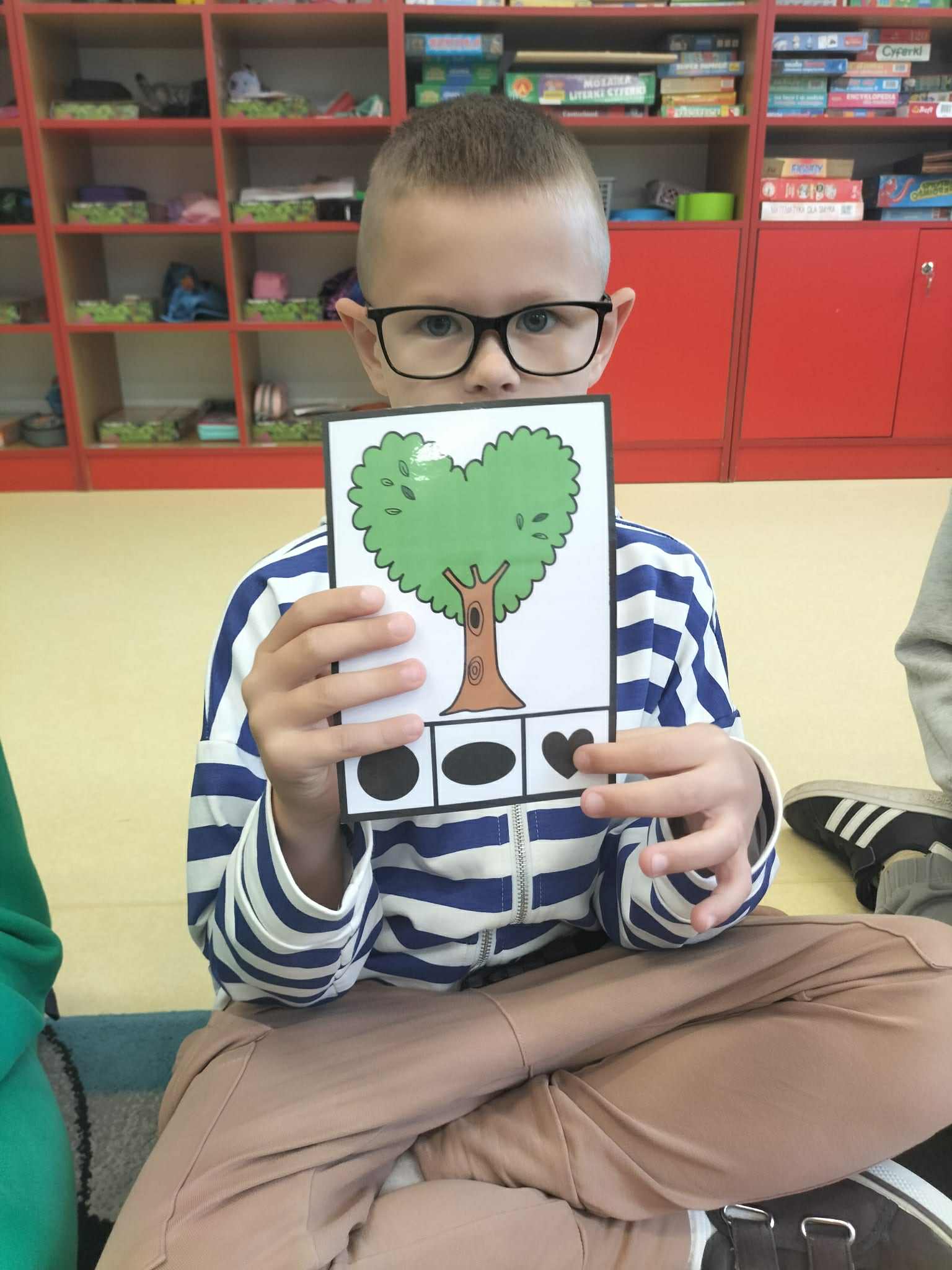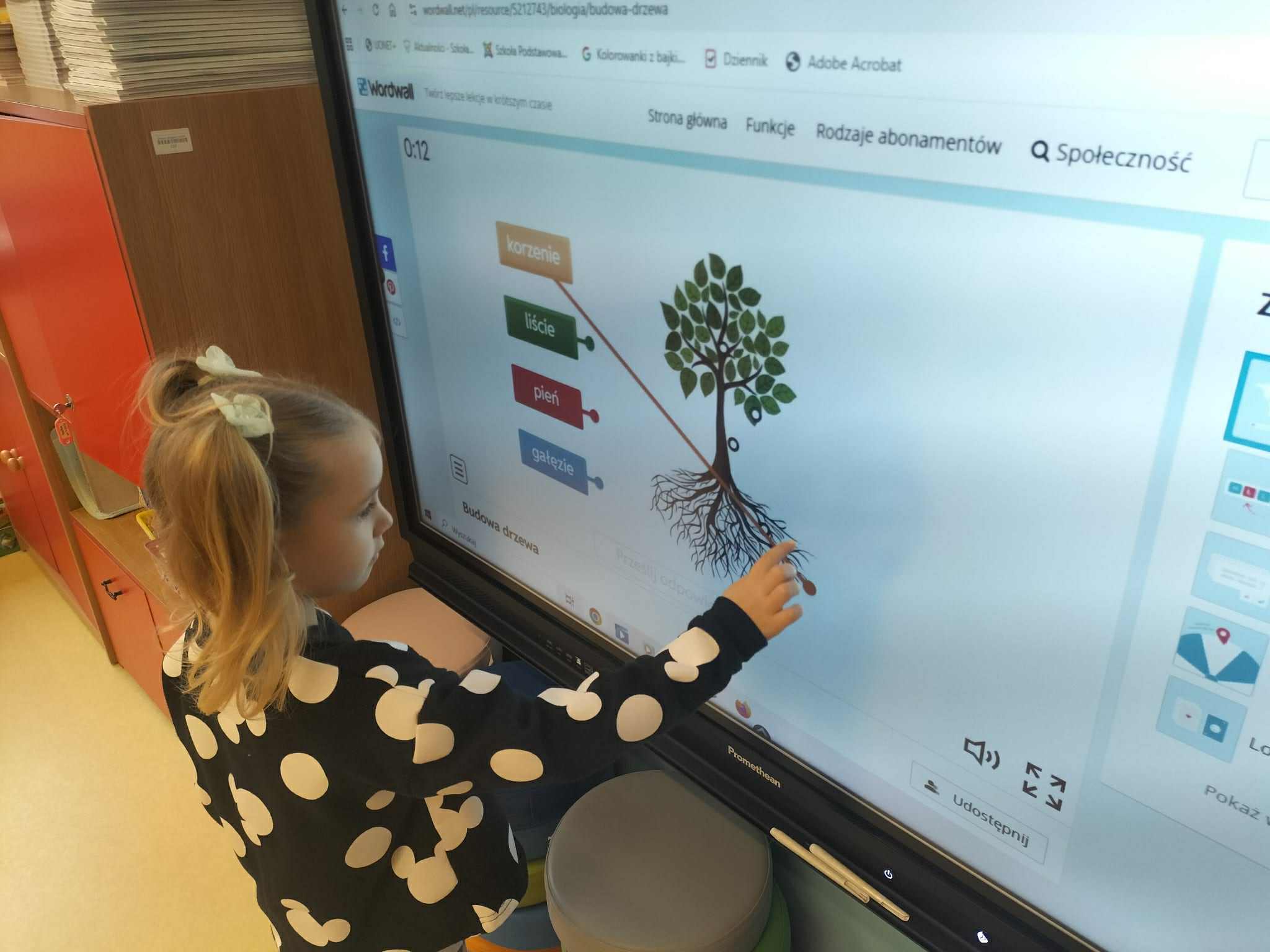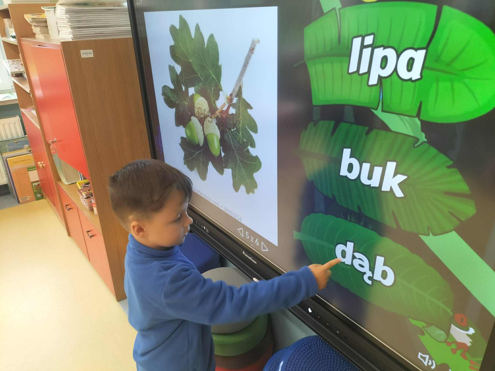 Poznały ich budowę oraz kolejne etapy wzrostu – od maleńkiego nasionka po dorodne, rozłożyste drzewo. Rozmawialiśmy też o tym, jak ważne są drzewa w przyrodzie i jak wiele pożytku dają człowiekowi, ale też jakie są zagrożenia dla drzew. Dzieci zapoznały się z podziałem drzew na liściaste i iglaste. W części praktycznej dzieci układały w parach puzzle, odszukiwały ich prawidłowych kształtów z figur geometrycznych, kodowały rysunek drzewa oraz rozwiązywały zadania na tablicy multimedialnej.