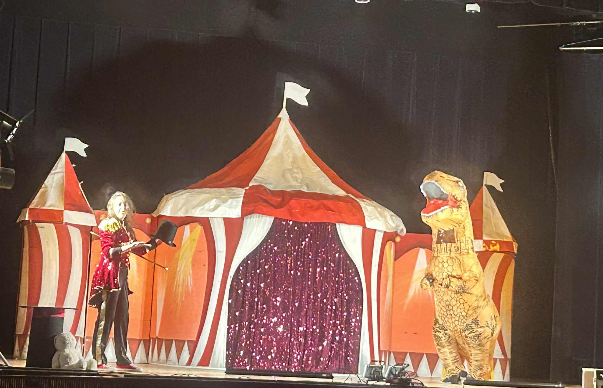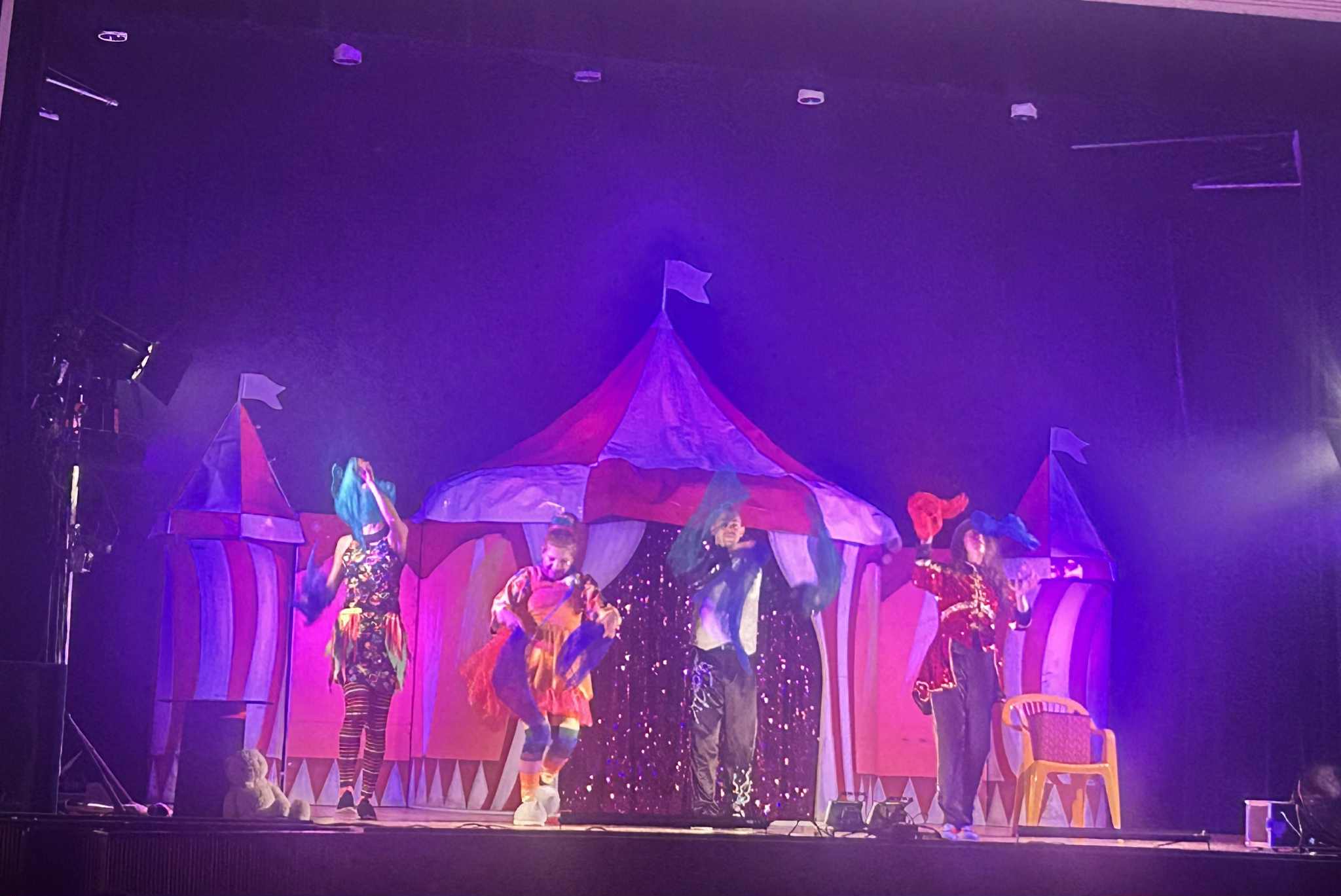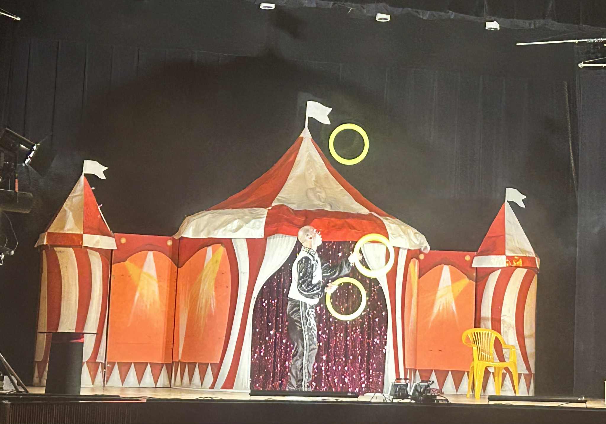 Na scenie działo się naprawdę wiele! Dzieci z zachwytem oglądały żonglerkę, ekwilibrystykę, iluzję oraz niezwykły pokaz świetlny, który rozświetlił salę feerią barw i dźwięków. To jednak nie wszystko – mali widzowie mogli również spróbować swoich sił w cyrkowych sztuczkach, co dostarczyło im mnóstwo radości i śmiechu.