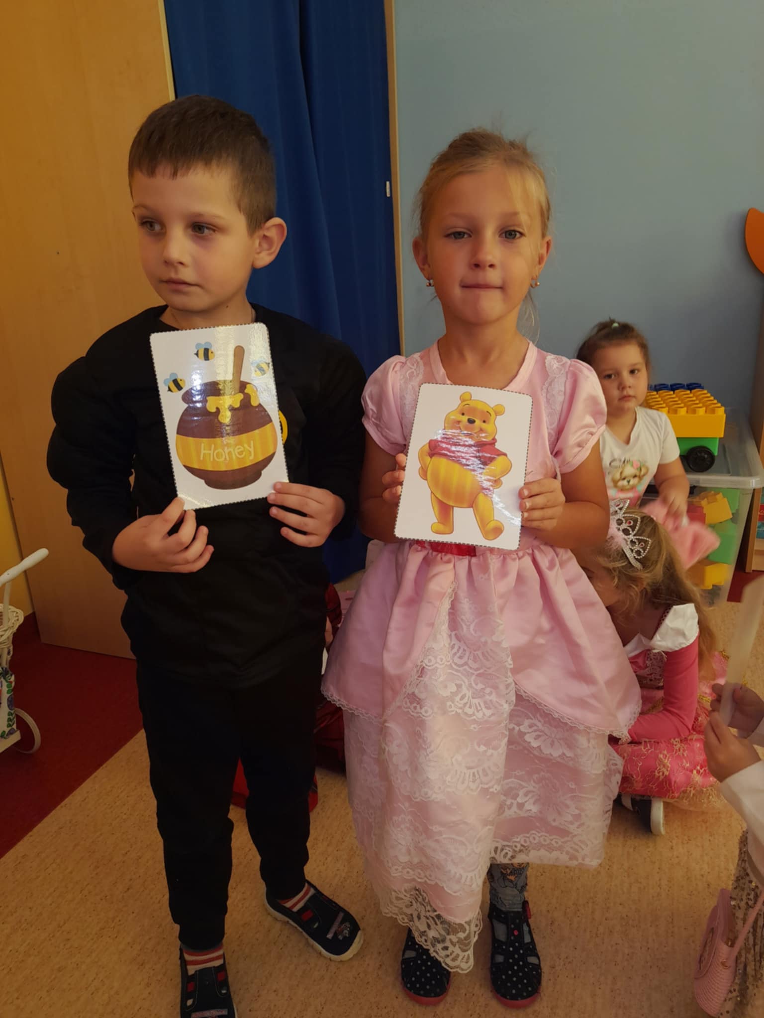 Dużo radości przyniosła zabawa latarkowa „Co misio zjadł?”, a także karmienie misia odpowiednimi plastrami miodu. Na dzieci czekała również misiowa trasa ruchowa, którą każdy musiał przejść, wykonując przy tym odpowiednie zadania. Były również tańce ze swoimi pluszakami.