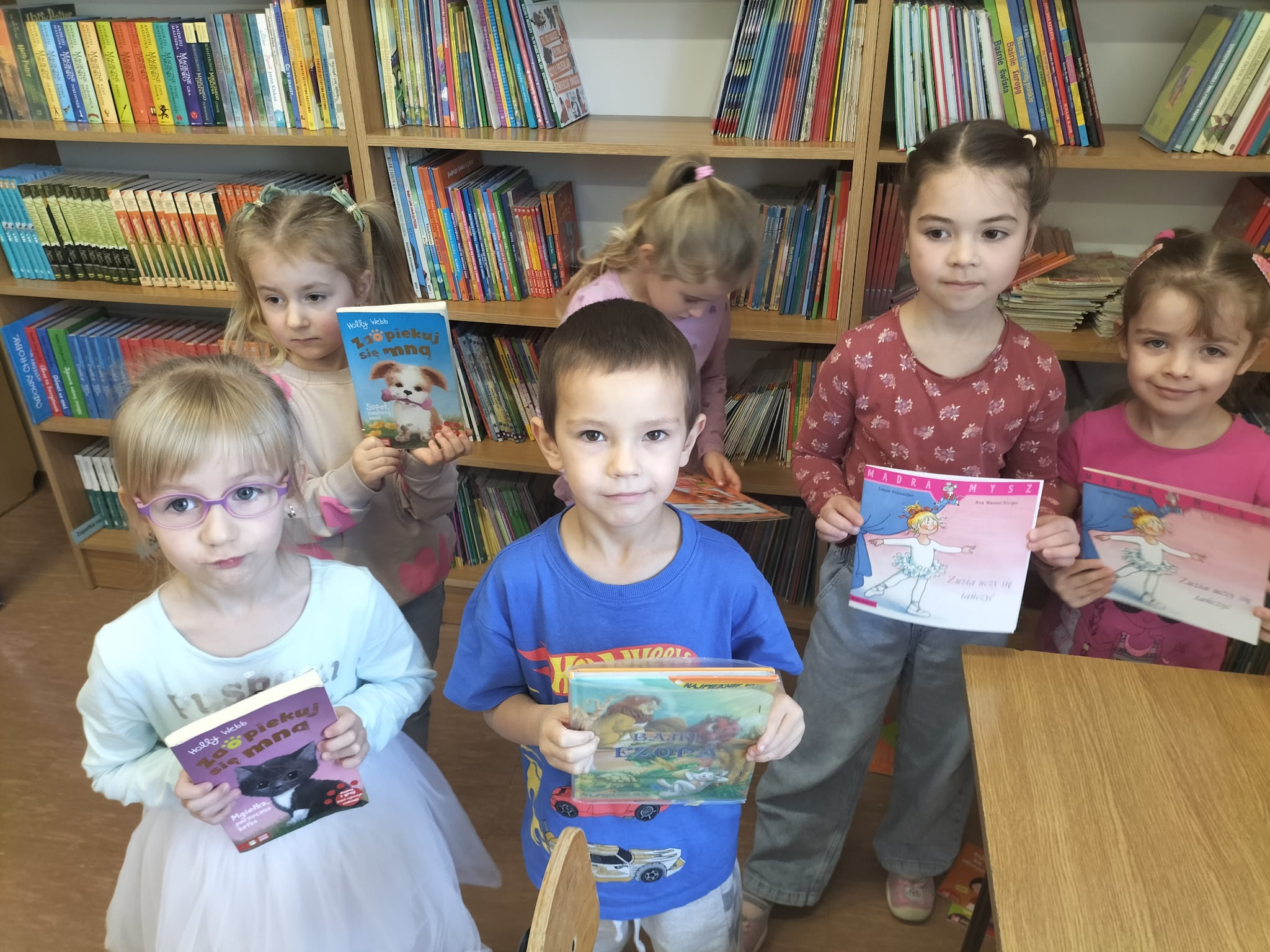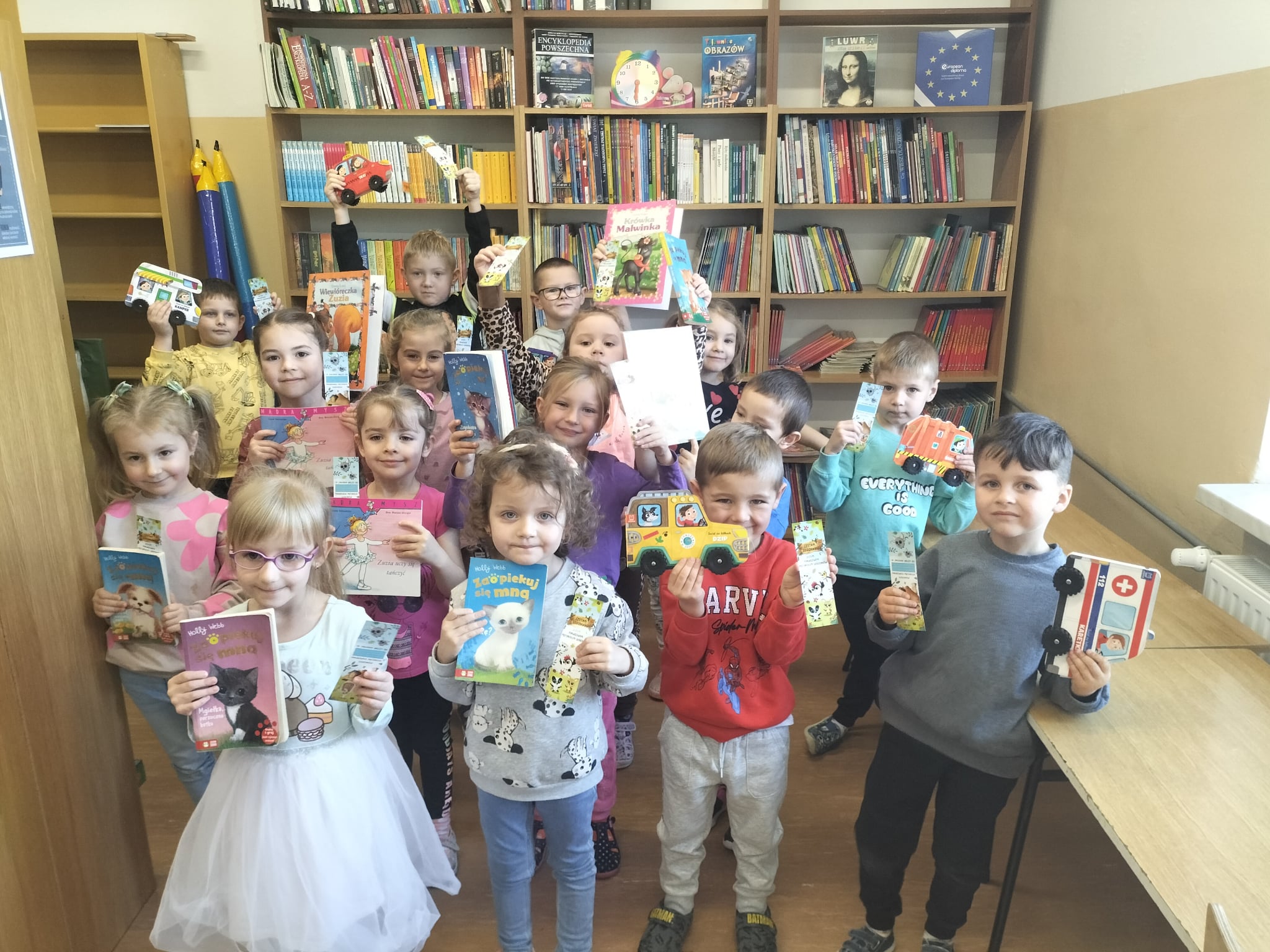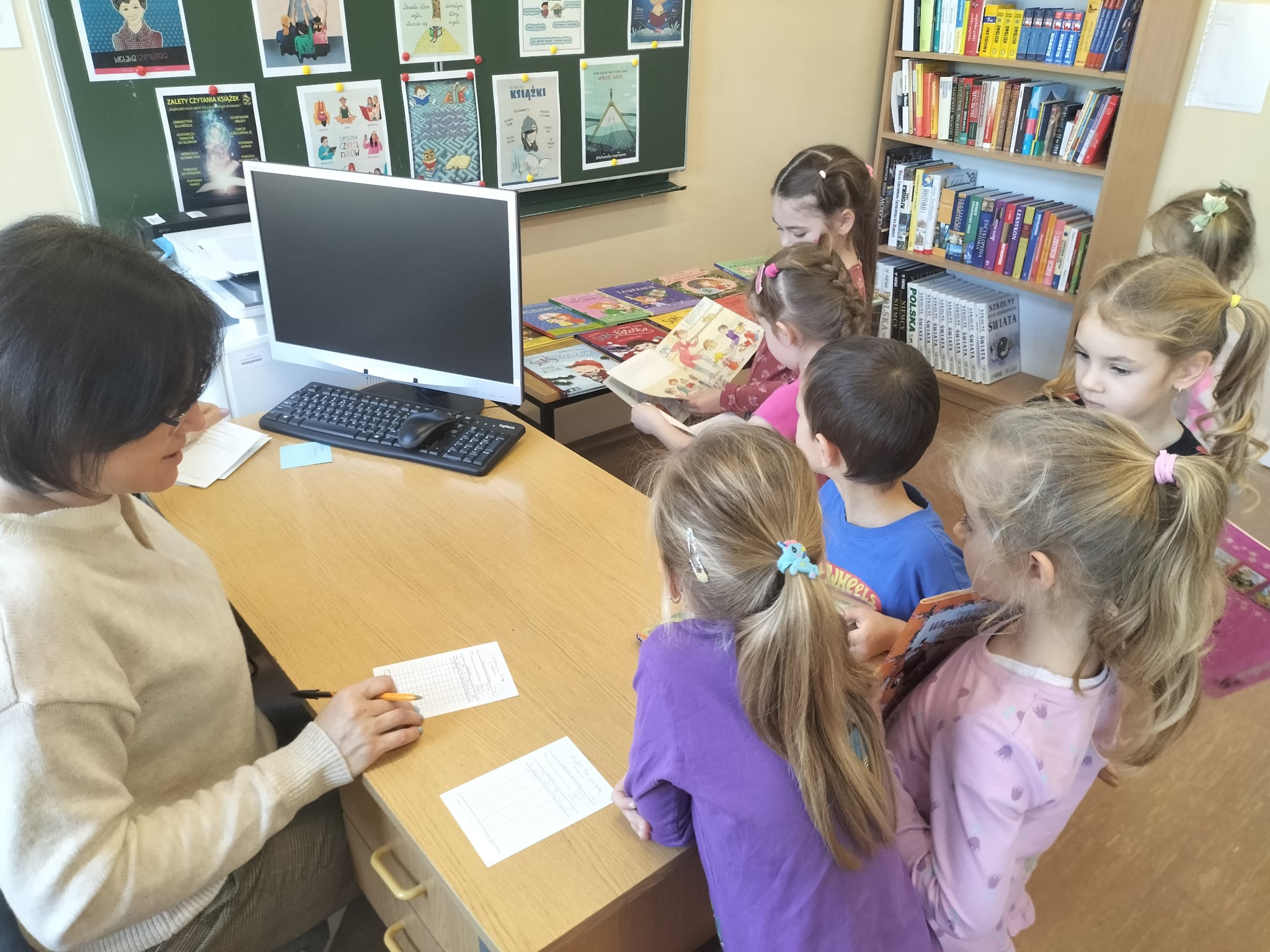 Dziś dzieci z oddziału zerowego odwiedziły bibliotekę szkolną. Pani bibliotekarka założyła dzieciom ich pierwsze karty czytelnika, wyjaśniając do czego służą oraz jak przebiega proces wypożyczania książek. Następnie pokazała dział literatury dziecięcej przygotowany specjalnie dla nich. Dzieci mogły samodzielnie wybrać interesującą książkę i wypożyczyć ją do domu, co wzbudziło wśród nich wiele entuzjazmu i radości. Na pamiątkę wizyty w bibliotece wszyscy otrzymali zakładki do książki.