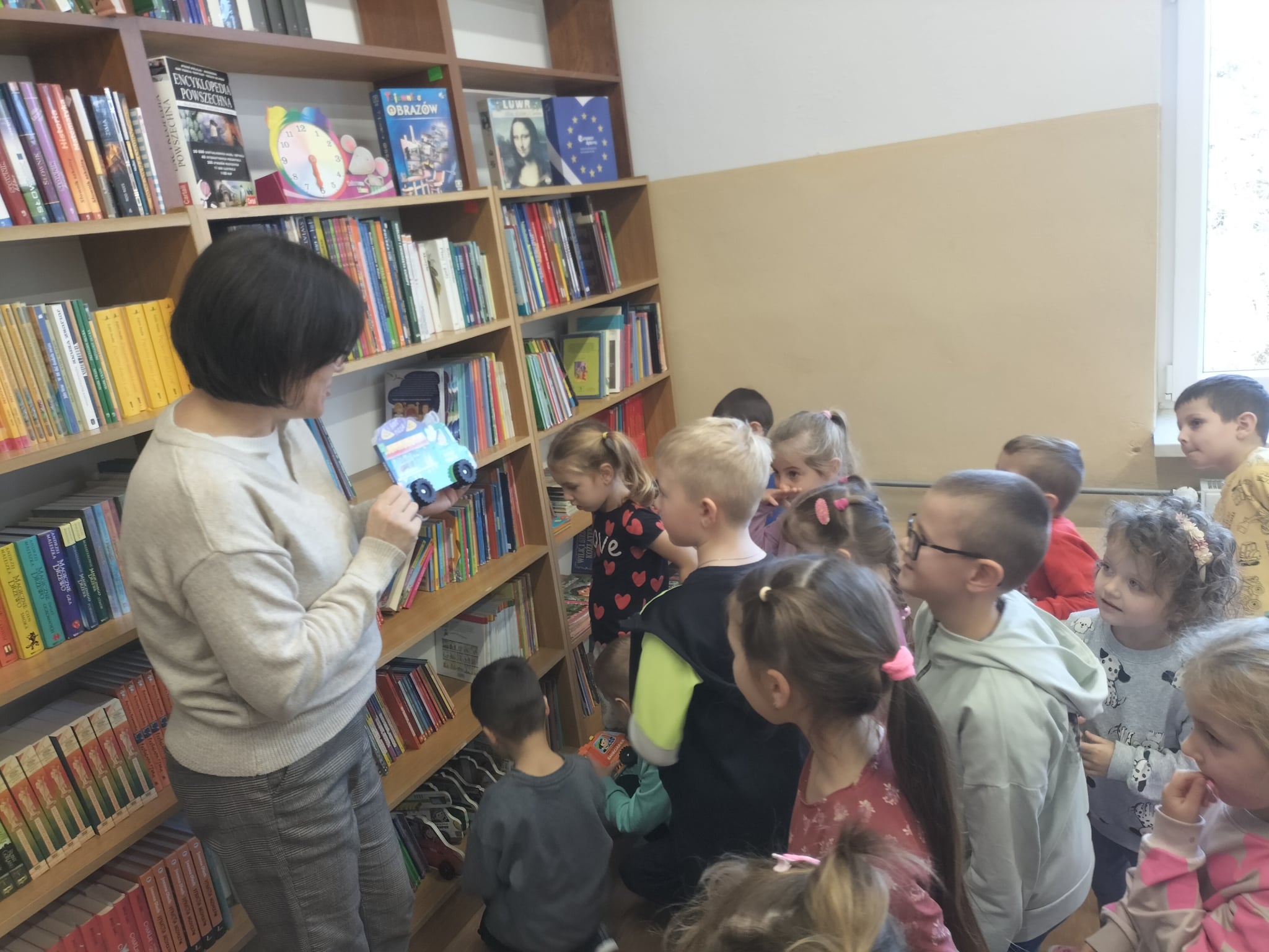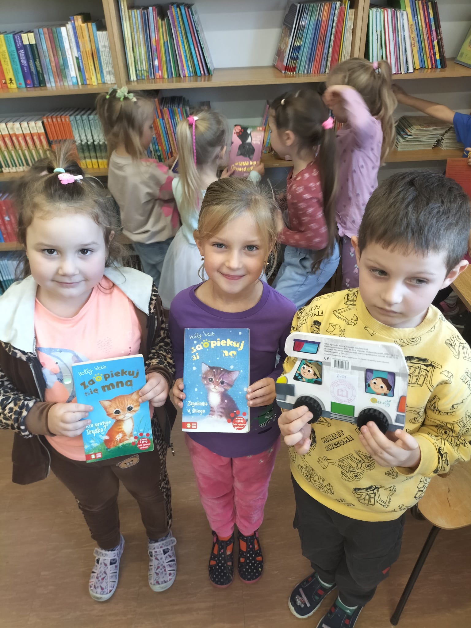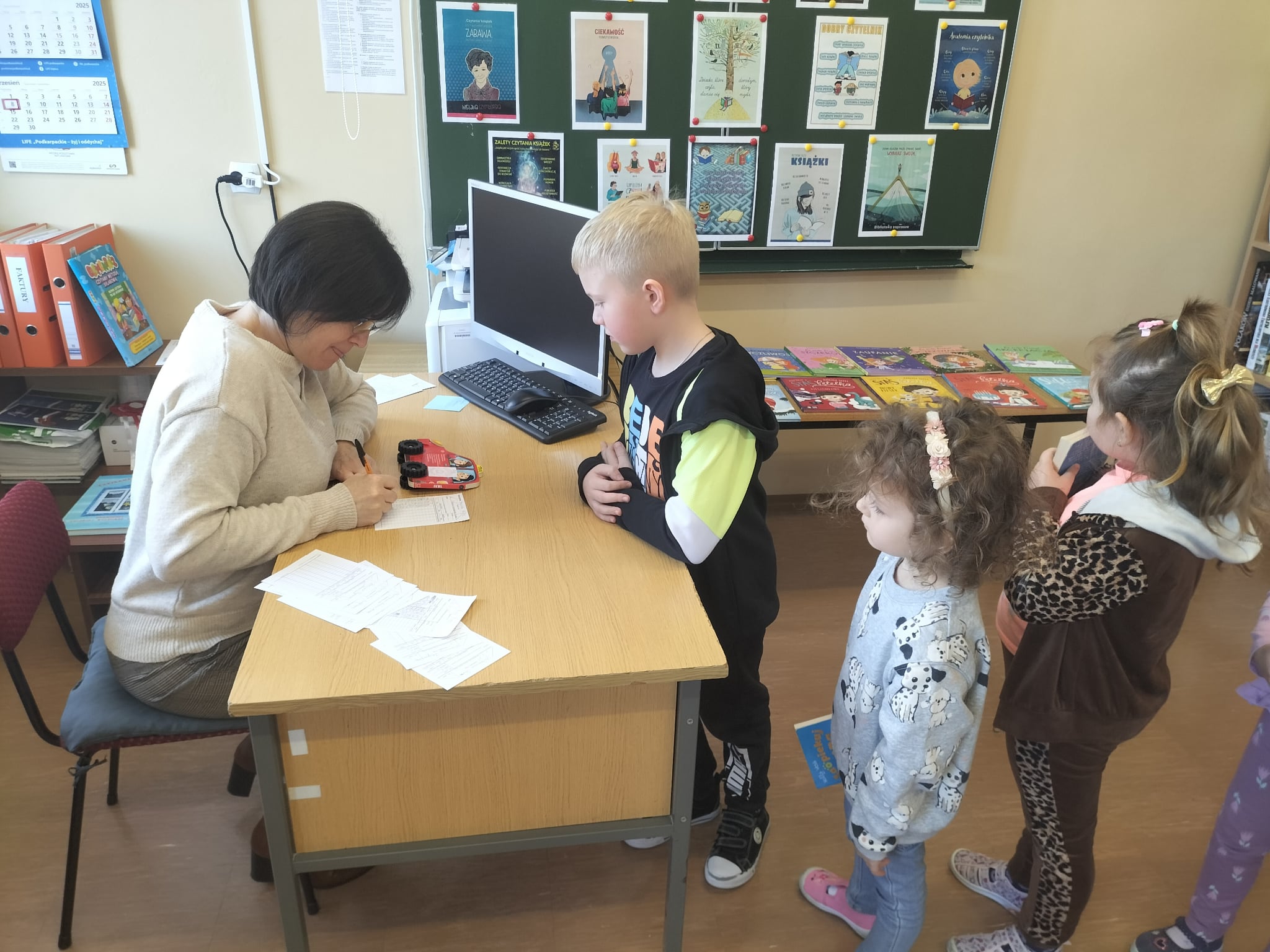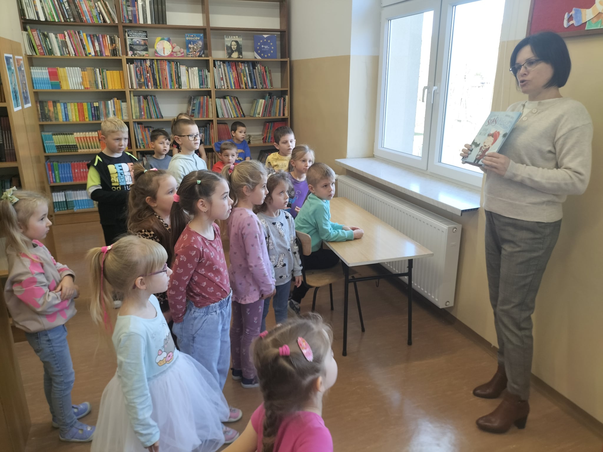 Dziś dzieci z oddziału zerowego odwiedziły bibliotekę szkolną. Pani bibliotekarka założyła dzieciom ich pierwsze karty czytelnika, wyjaśniając do czego służą oraz jak przebiega proces wypożyczania książek. Następnie pokazała dział literatury dziecięcej przygotowany specjalnie dla nich. Dzieci mogły samodzielnie wybrać interesującą książkę i wypożyczyć ją do domu, co wzbudziło wśród nich wiele entuzjazmu i radości. Na pamiątkę wizyty w bibliotece wszyscy otrzymali zakładki do książki.
