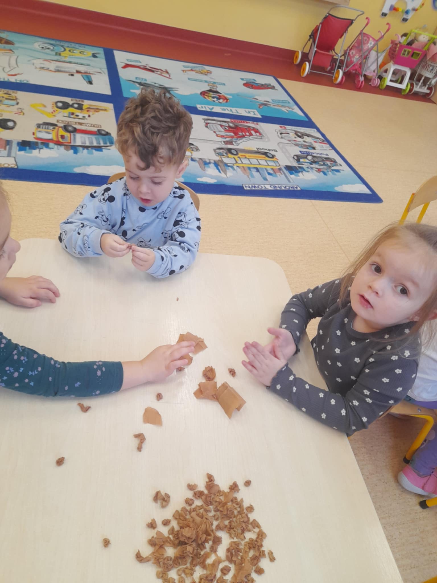 Na zakończenie dzieci z zerówki wykonały pracę plastyczną, używając… widelca. Maluchy natomiast pięknie wyklejały pluszowe misie. Kreatywność i zaangażowanie były na najwyższym poziomie.