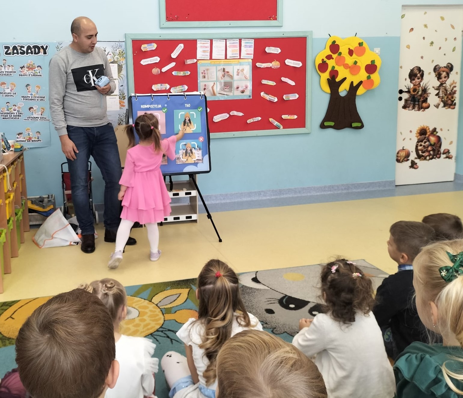 Dzieci miały możliwość zapoznania się z aparatem fotograficznym oraz zasadami, które pomagają uchwycić najlepsze ujęcia. Największą atrakcją okazała się część praktyczna – każdy mógł zrobić zdjęcie swojej koleżance lub koledze, a następnie wydrukować własną fotografię i zabrać ją na pamiątkę.