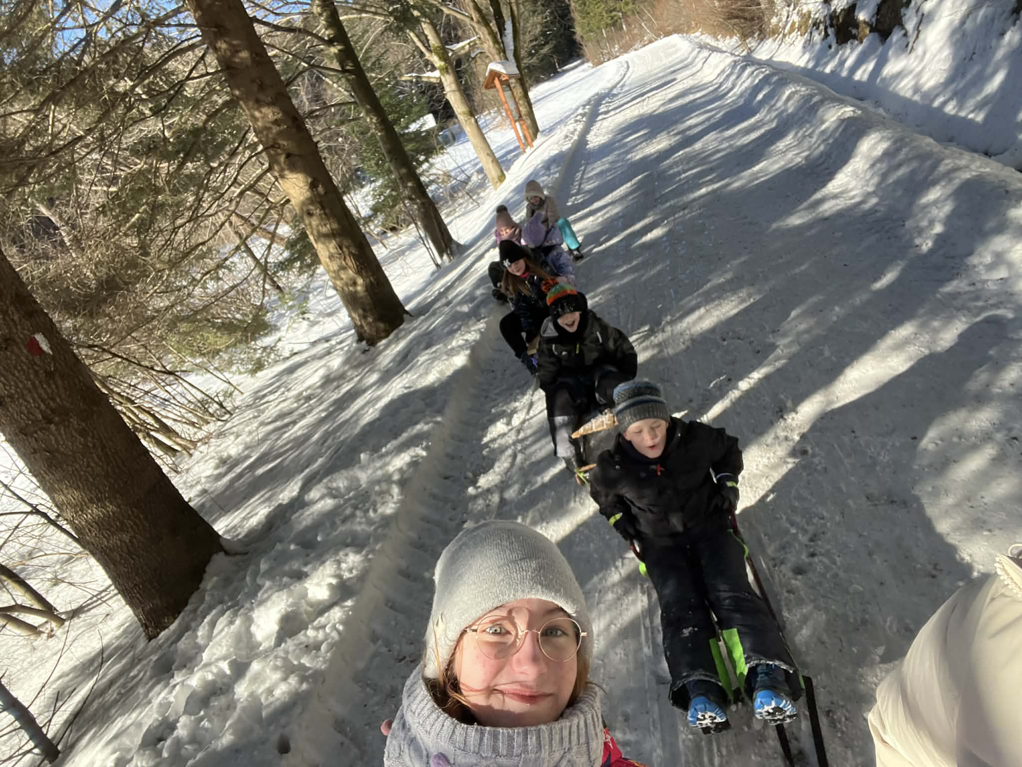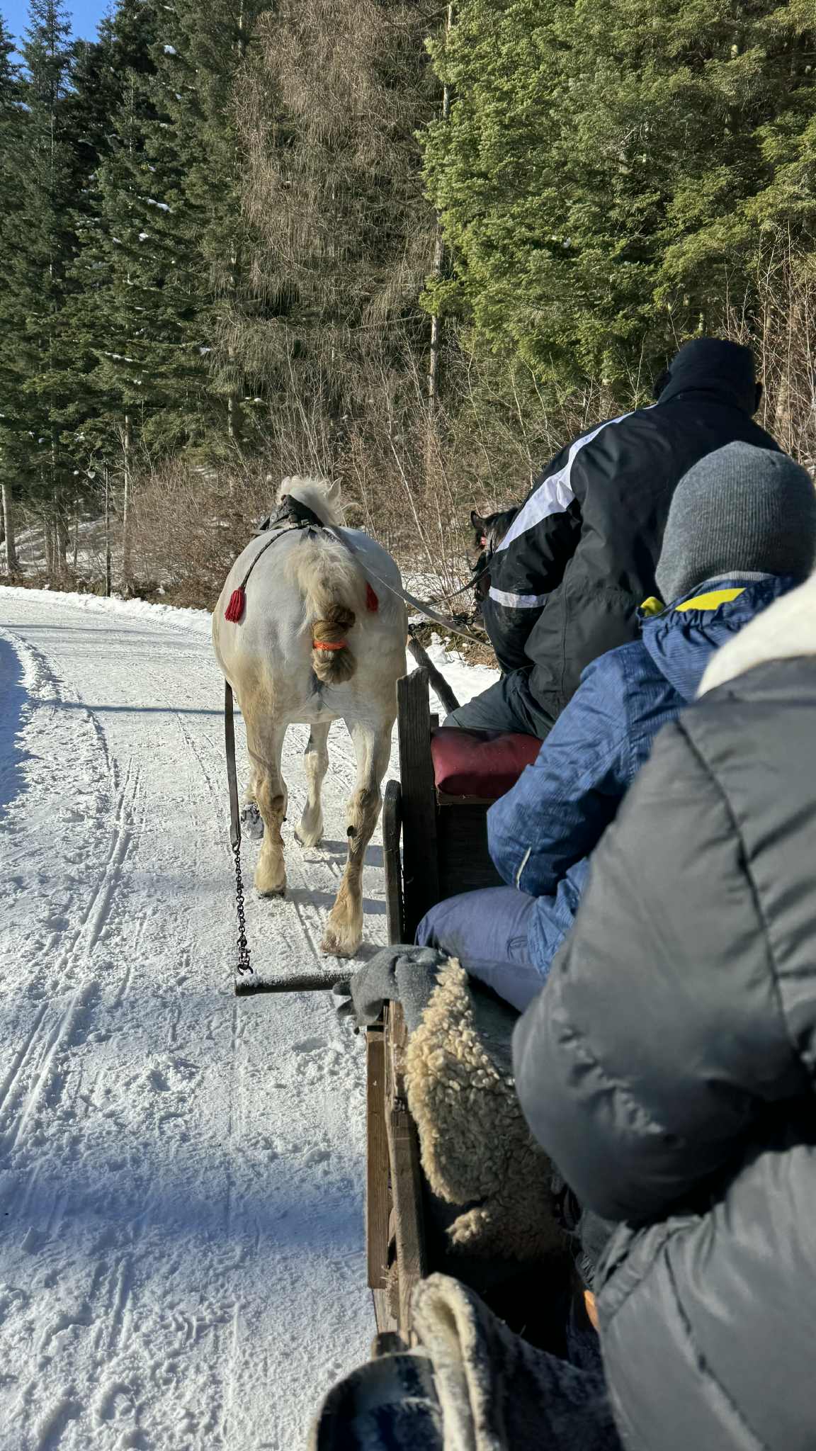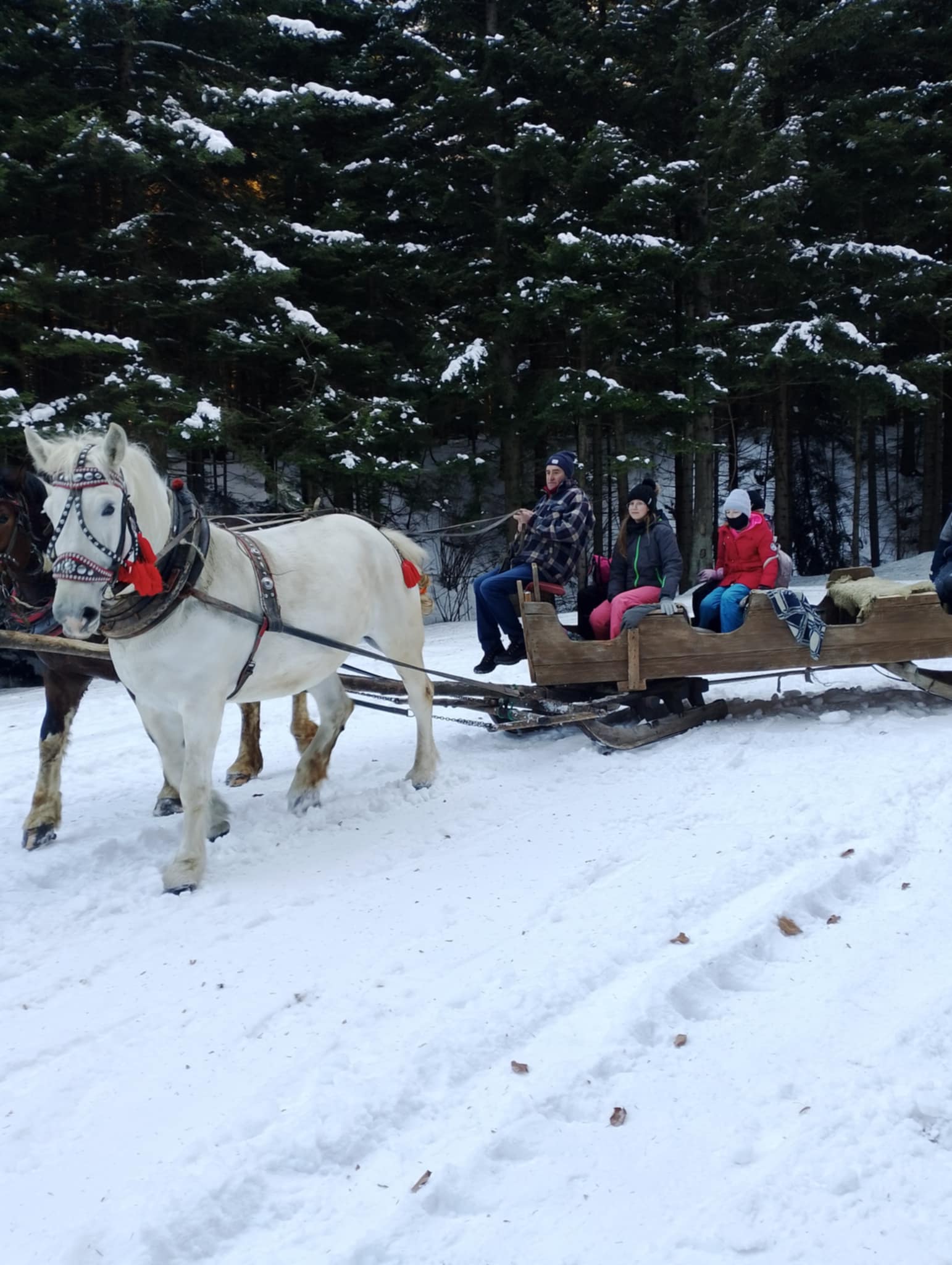 Dopisała nam idealna zimowa pogoda! Słońce radośnie świeciło prosto w oczy, mróz delikatnie szczypał w policzki, a wśród drzew panowała cisza i prawdziwie magiczna atmosfera. Śniegu było pod dostatkiem, więc sanie sunęły jak z bajki, a krajobrazy wokół wyglądały jak z pocztówki! Po emocjonującym kuligu przyszedł czas na wspólne ognisko i zabawy na śniegu.